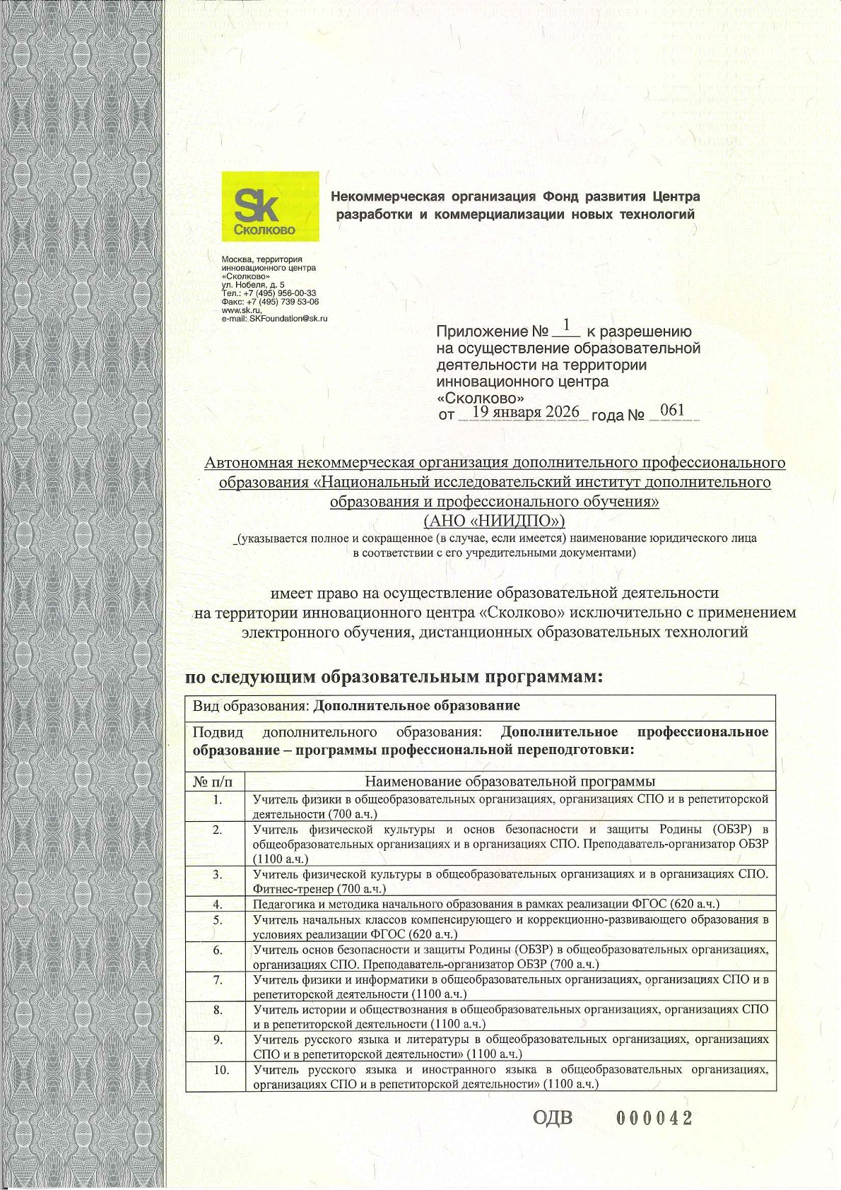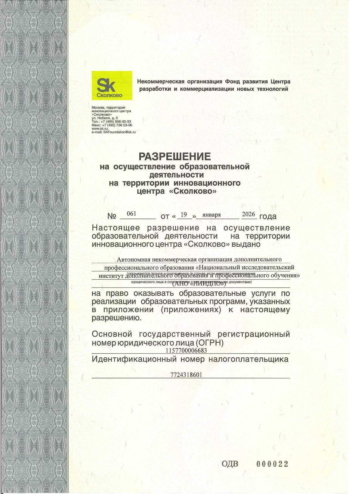 Лицензия на осуществление образовательной деятельности № Л035-01298-77/00180468