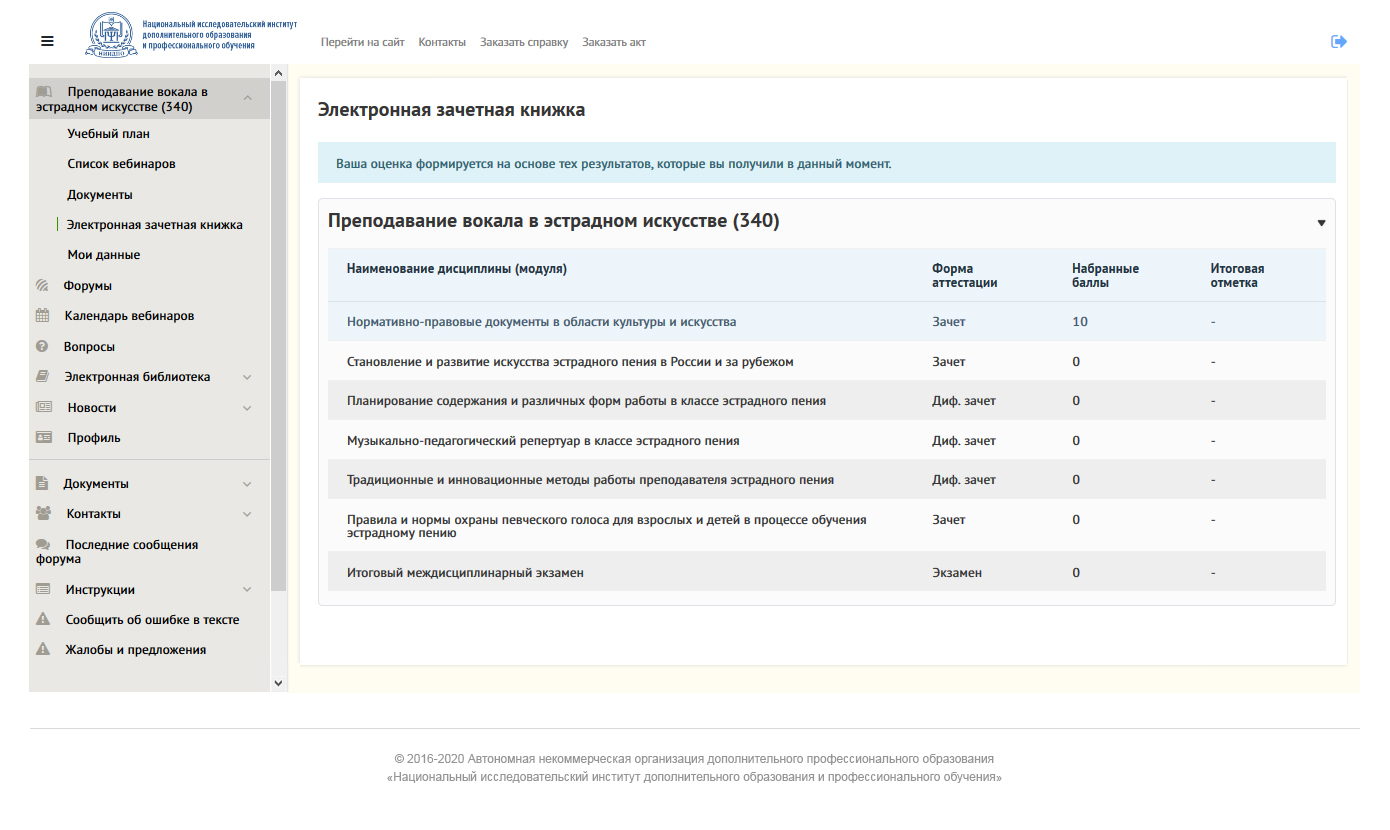 Смотрите процесс обучения в личном кабинете