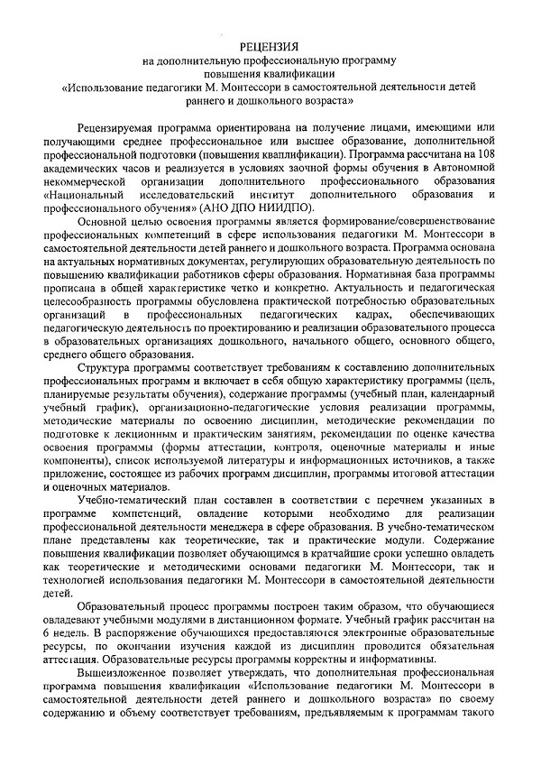 Обзор программы повышения квалификации «Использование педагогики М. Монтессори в самостоятельной деятельности детей раннего и дошкольного возраста»