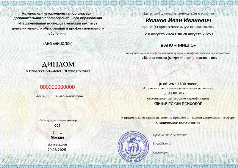 - Высшее образование любое; при наличии дополнительного профессионального образования в области психологии (переподготовки бессрочно; повышение квалификации не старше 3-х лет) возможен перезачет дисциплин с уменьшением срока и цены