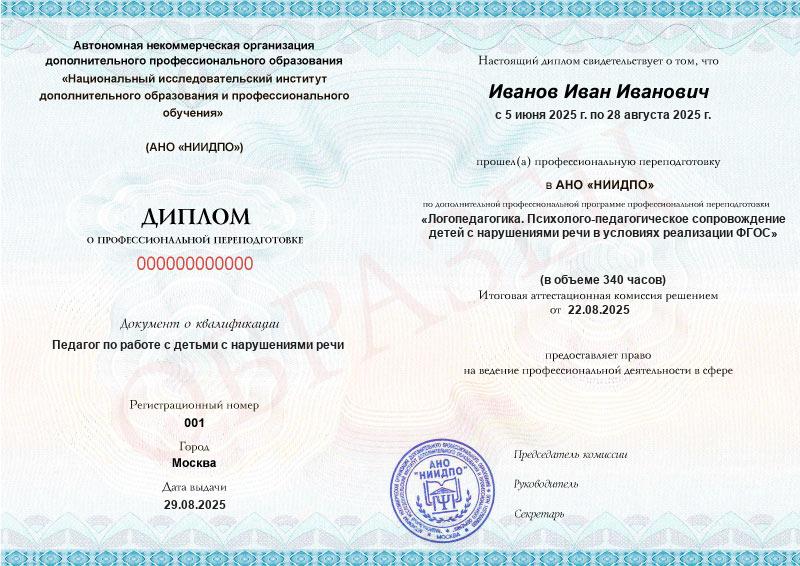 Да, выданный АНО «НИИДПО» диплом предоставляет вам право на ведение профессиональной деятельности в соответствии с квалификацией.