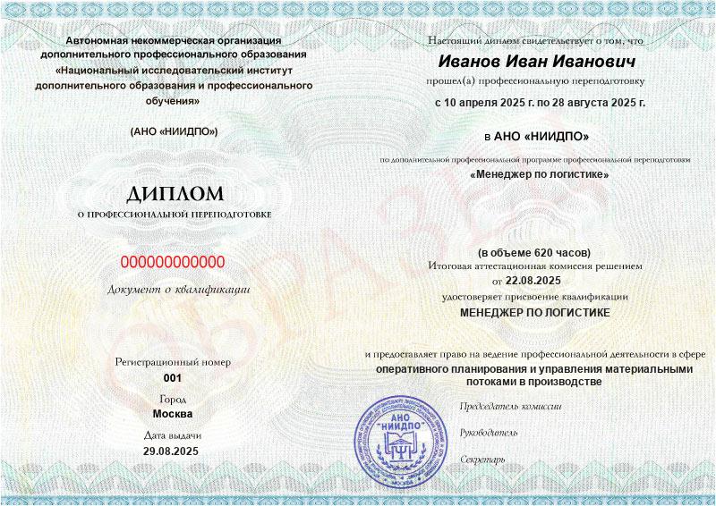 - Квалификация: Менеджер по логистике