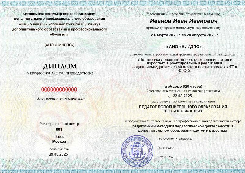 Студент, желающий поступить в АНО «НИИДПО», должен предоставить справку из образовательной организации. Независимо от срока окончания обучения по программе дополнительного образования, диплом о профпереподготовке выдаётся только после предъявления документа о получении среднего профессионального или высшего образования.