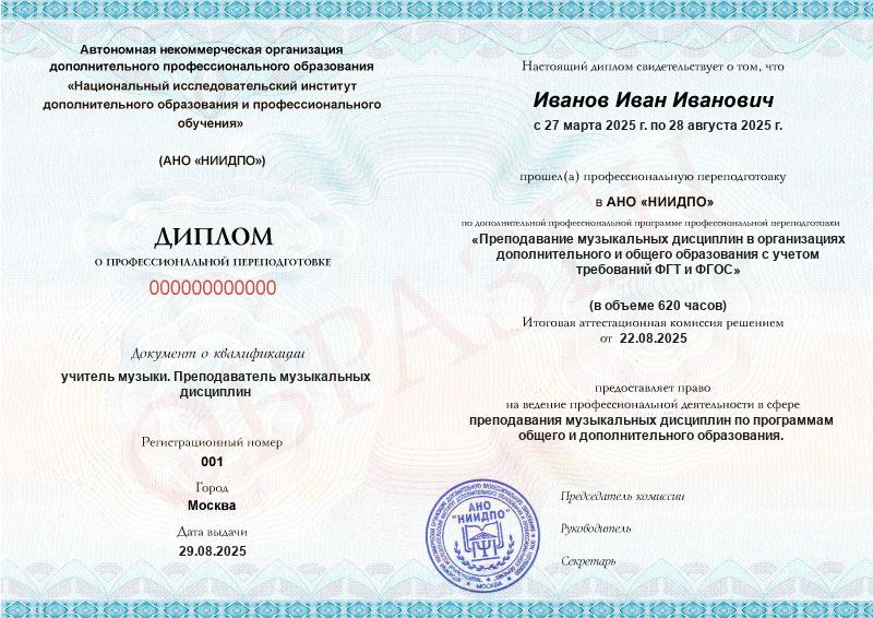 Обзор программы профессиональной переподготовки «Преподавание музыкальных дисциплин в организациях дополнительного и общего образования с учетом требований ФГТ и ФГОС» с присвоением квалификации «учитель музыки. Преподаватель музыкальных дисциплин»