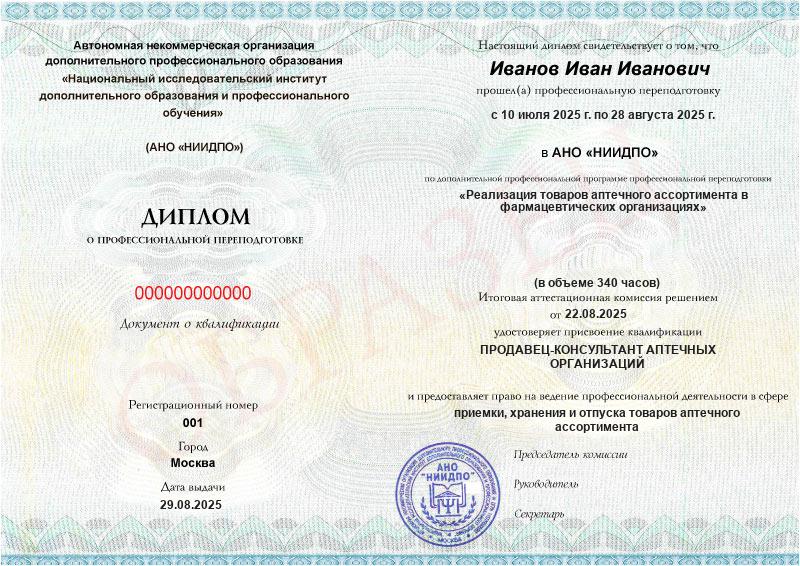 Да, документы оформляются на бланках с защитой от подделок, заполняются на русском языке, в них ставится печать АНО «НИИДПО».