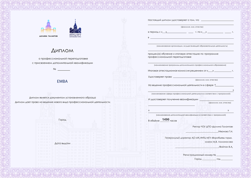 - Два диплома: по окончании вы получите документы о профессиональной переподготовке от двух организаций: АНО «НИИДПО» и ИНТЦ МГУ «Воробьевы горы».