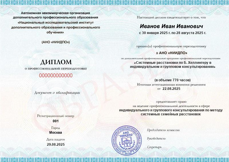 - Диплом о профессиональной переподготовке с правом на ведение профессиональной деятельности