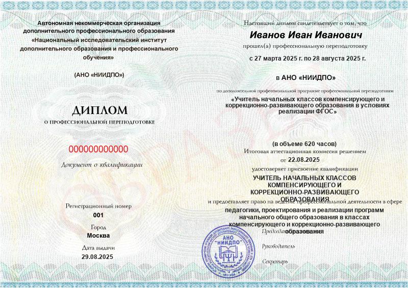 Да, документы оформляются на бланках с защитой от подделок, заполняются на русском языке, в них ставится печать АНО «НИИДПО».