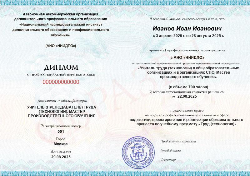 Учитель труда (технологии) в общеобразовательных организациях и в организациях СПО. Мастер производственного обучения (700ч)